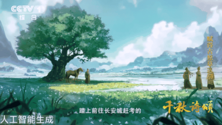 《千秋诗颂》由中央广播电视总台央视综合频道(CCTV-1)策划制作,依托总台“央视听媒体大模型”,联合上海人工智能实验室“书生大模型”,通过AI文生视频技术,将字字珠玑、意蕴深厚的古诗文字转化为具有中华审美的画面。